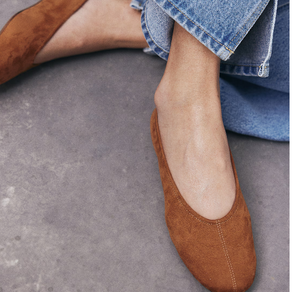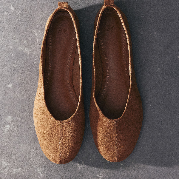 Ballet pumps with a soft, napped finish featuring rounded toes, a visible seam at the front and a loop at the back. Jersey linings.